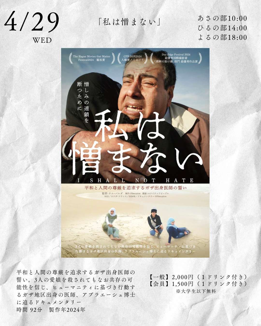 3人の愛娘を殺されてもなお共存の可能性を信じ、ヒューマニティに基づき行動するガザ地区出身の医師、